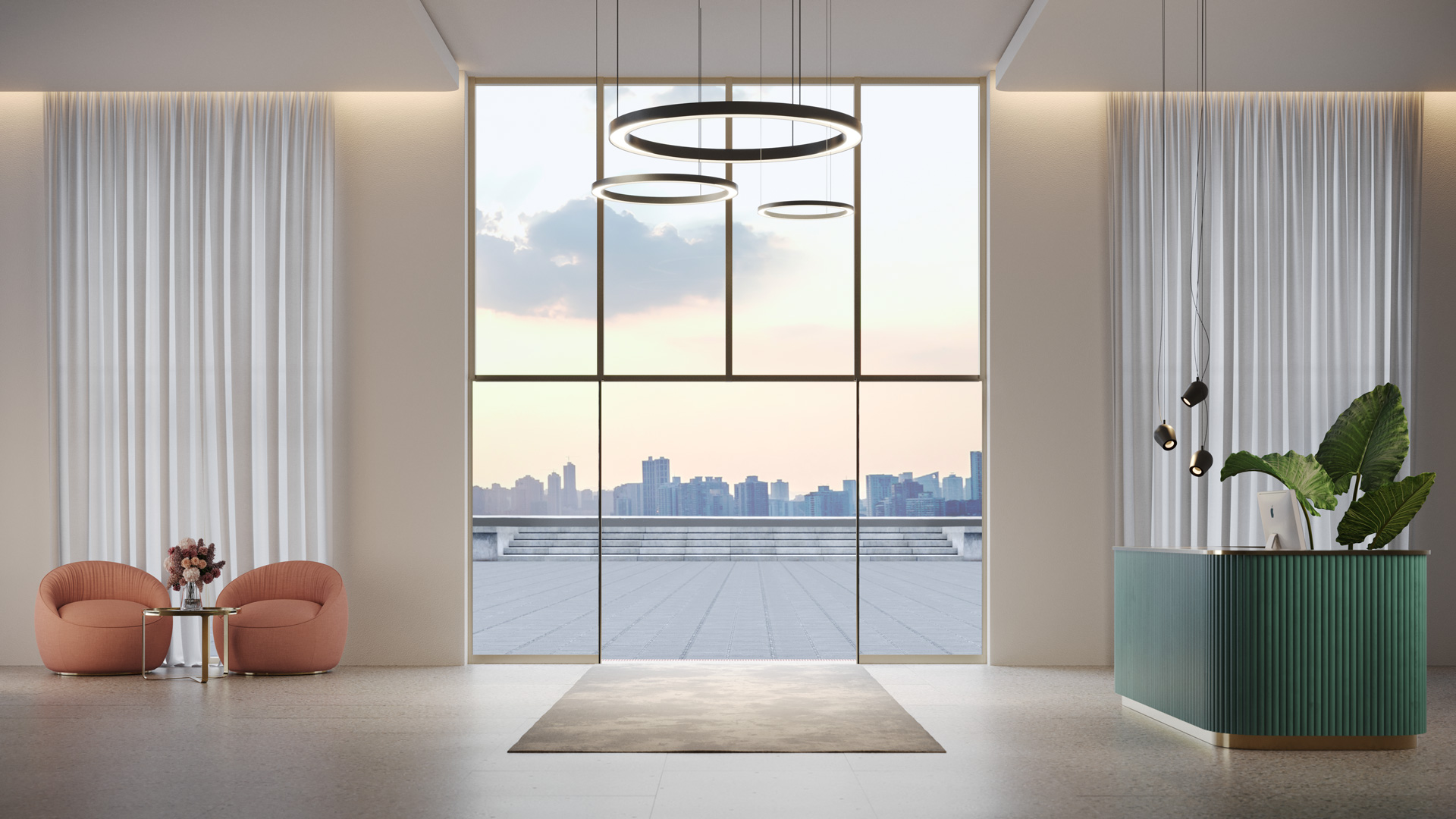 Ana giriş, harika bir ilk izlenim bırakmak için çekici ve davetkar görünmelidir. Binanızın tüm alanını aydınlatmak ve açmak için bir cam otomatik kayar kapı kullanın.